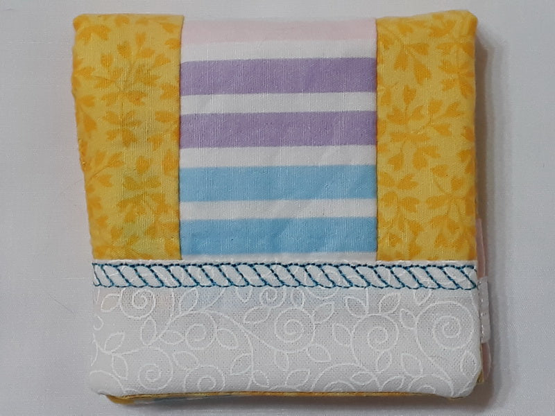 These great sticky notepad holders are made entirely in the hoop. Only a little hand sewing is used to close the opening. These use small amounts of fabric making them ideal for a stash buster. I had a container of remnant fabrics from other quilting projects which I used for these. Not only are these stylish but useful too! The cover keeps your sticky notepad from getting dirty and the pages from curling at the corners. These make for lovely gifts or to sell at a craft store or crafters market.