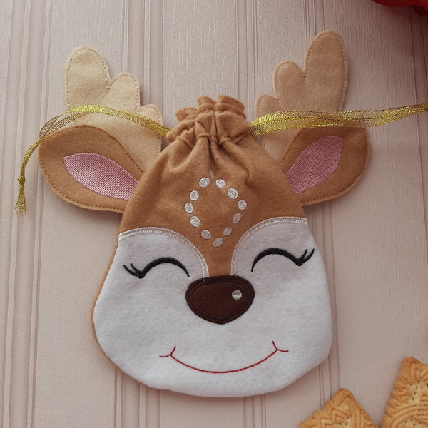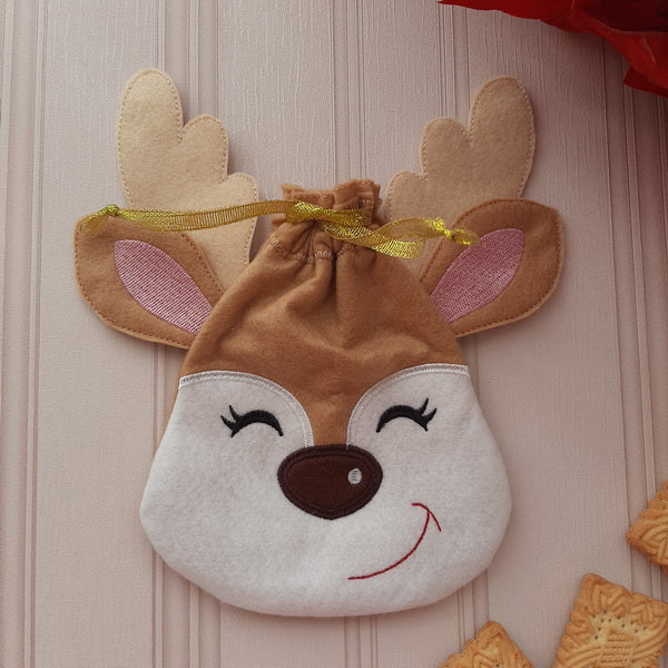 These reindeer drawstring bags are quick and easy to make. They are perfect to use for gifts. Just fill them with sweets, chocolates or biscuits.