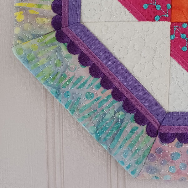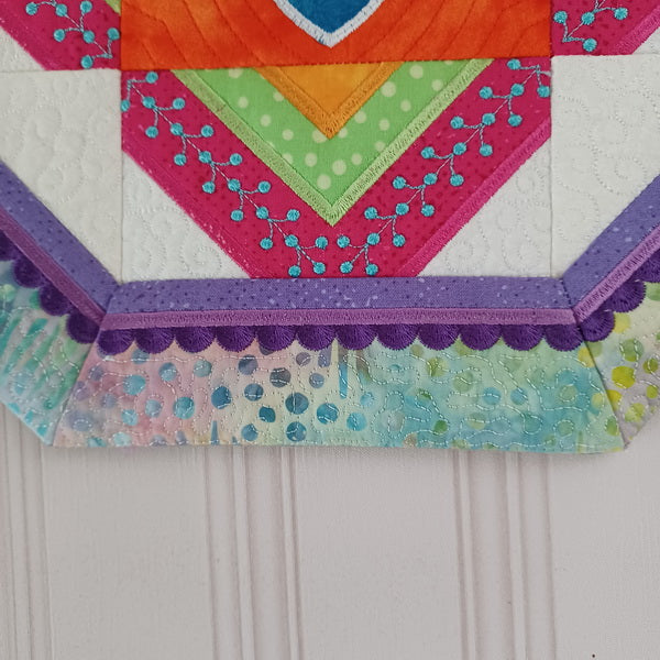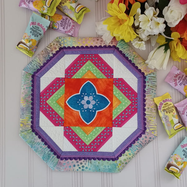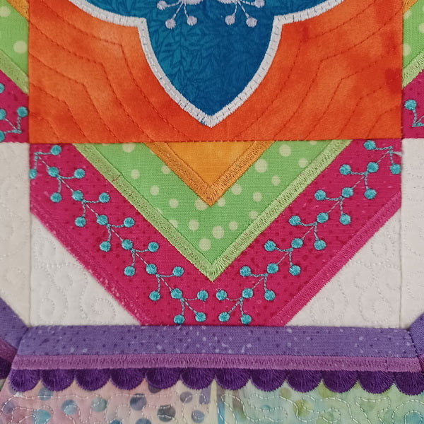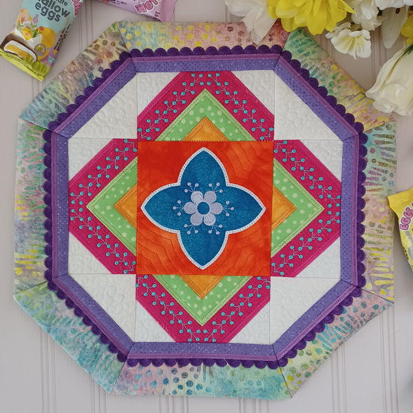 Making this Easter Table Topper is quick and easy. The pieces are all made in the hoop. The pieces are joined together and completed with a sewing machine. Mix and match fabrics to create your own unique Easter Table Topper. Small amounts of fabric is needed to create this table topper. This an ideal project to use left over pieces from other projects.