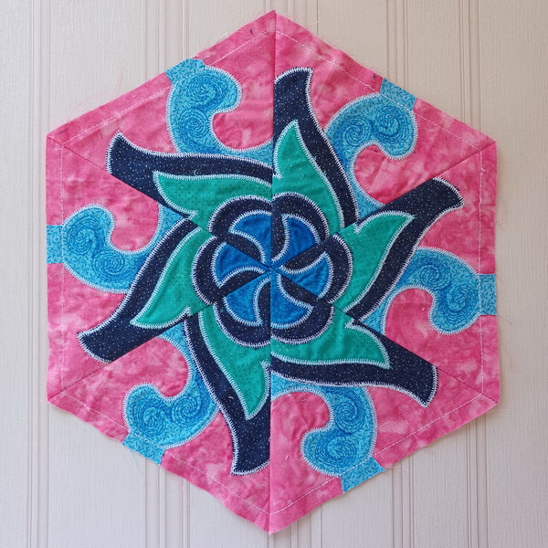 The Kaleidoscope Fantasy Hexagon Block 1 is the first hexagon block of our “Block A Week” embroidery-quilting project. There are 8 hexagon blocks to collect that make up the Kaleidoscope Fantasy Quilt.