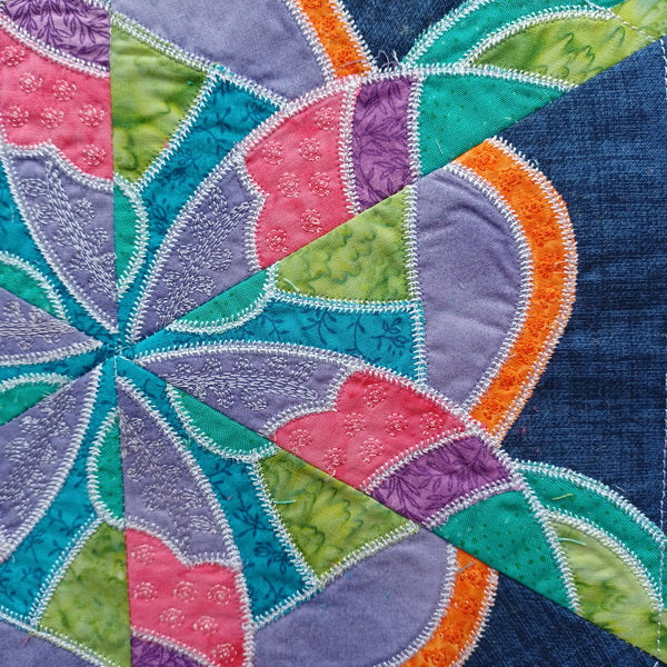 The Kaleidoscope Fantasy Hexagon Block 7 is the seventh hexagon block of our “Block A Week” embroidery-quilting project. There are 8 hexagon blocks to collect that make up the Kaleidoscope Fantasy Quilt.