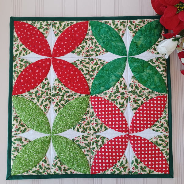 The instructions will show you how to make the Alabama Beauty quilted block and turn 4 blocks into a table topper or mini quilt. You can make the mini quilt any size you want by adding on additional blocks.