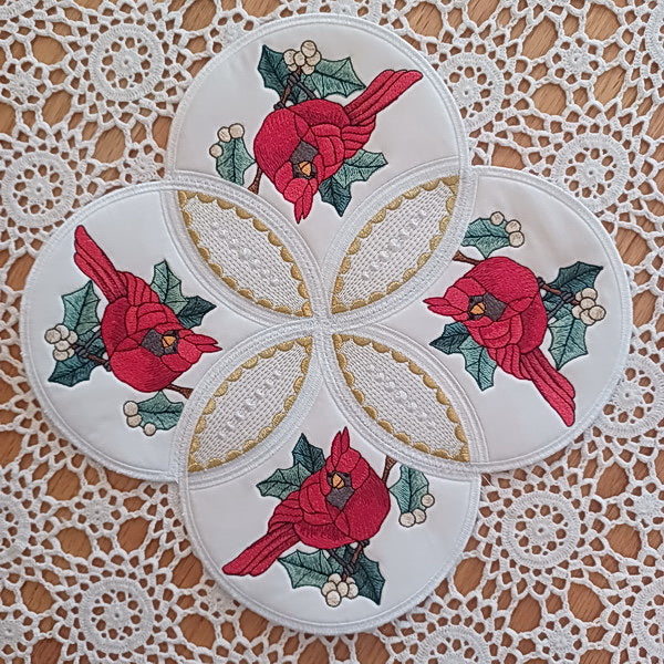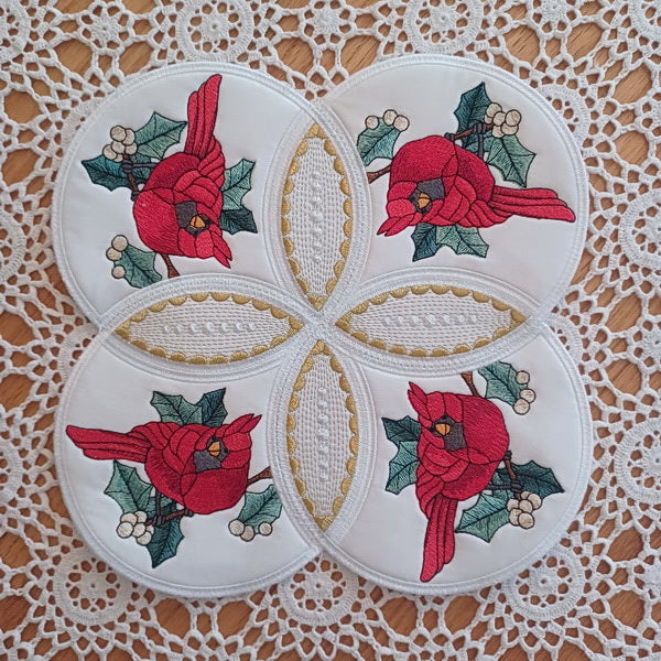 Perfect for the Christmas season, this cardinal cookie crumb catcher will look lovely on your table. It is a quick and easy topper to make.