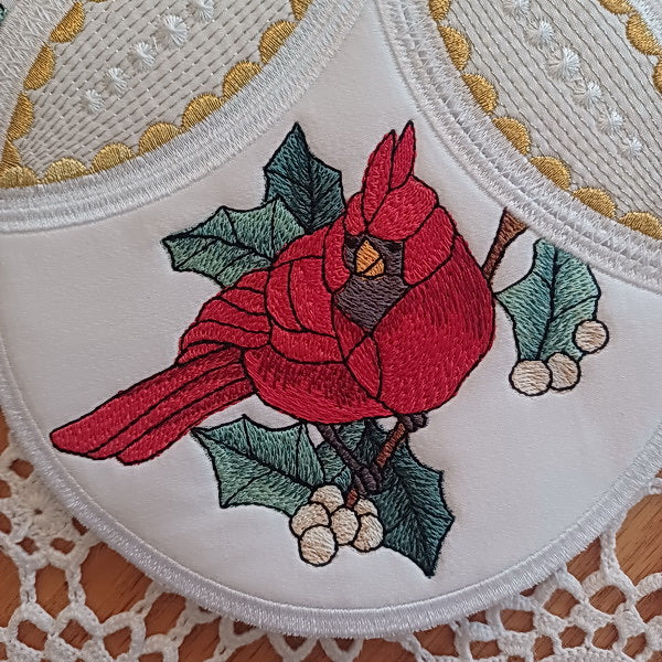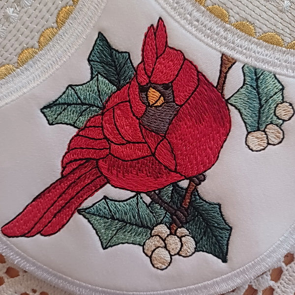 Give the Christmas Holidays an added touch of that festive feeling using this cardinal cookie crumb catcher as a table topper, place mat or a tray cloth.
