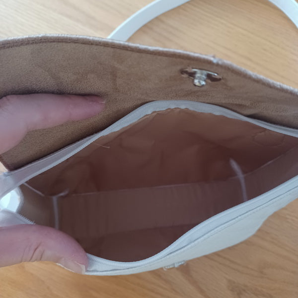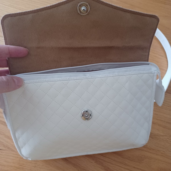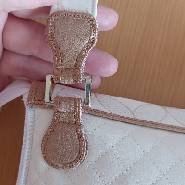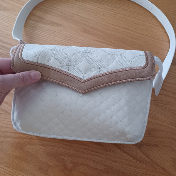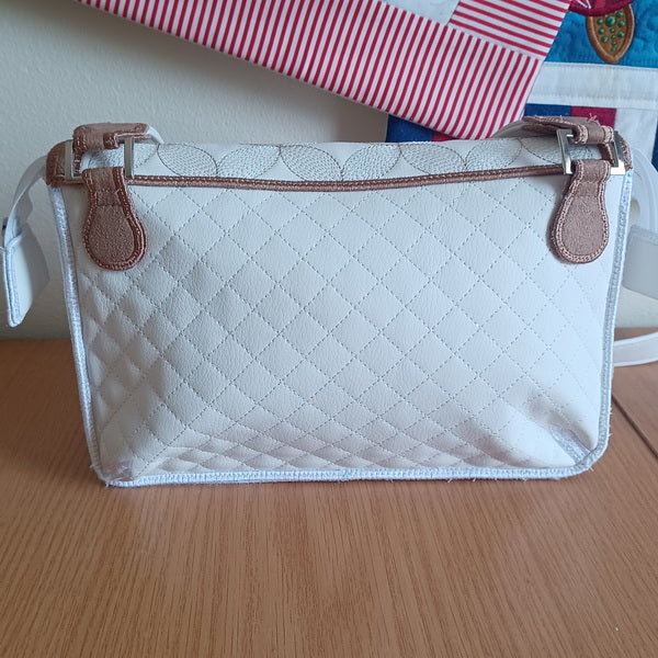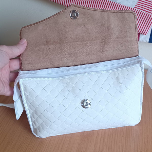 Designed for the 6x10 hoop, this clutch purse boasts a finished measurement of 9.5 inches / 23.5 cm wide x 7 inches / 17.5 cm high (excluding strap) x 2 inches / 5 cm deep. It offers ample space for all your essentials.
