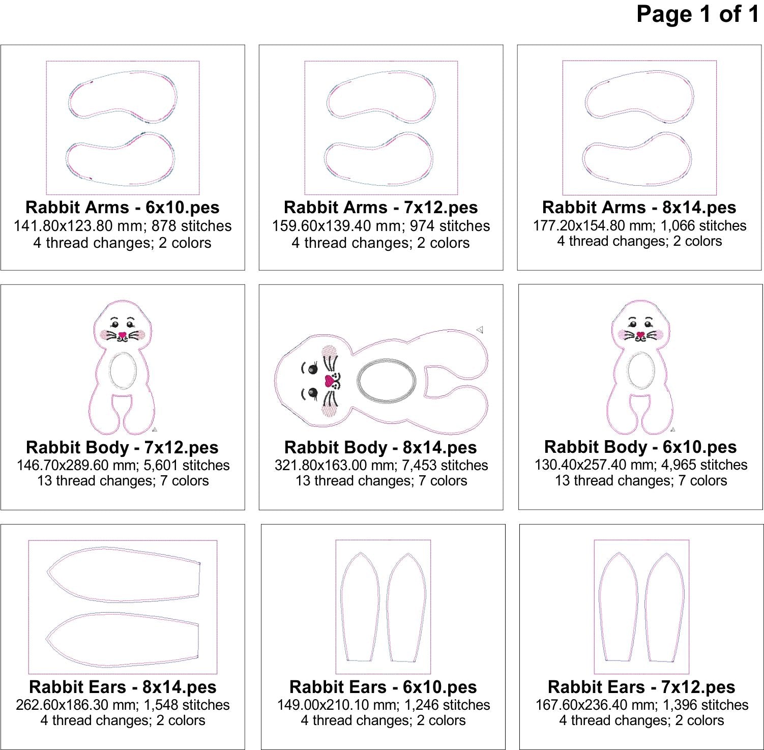 This adorable ITH Rabbit Softie is made in the hoop. This softie is done in 2 hoopings. The ears are attached to the body in the hoop. A little hand stitching is needed to close any openings needed for filling and to stitch the arms onto the body. This bear comes in 3 sizes: 6x10 (160mm x 260mm), 7x12 (180mm x 300mm) and 8x14 (200mm x 360mm)