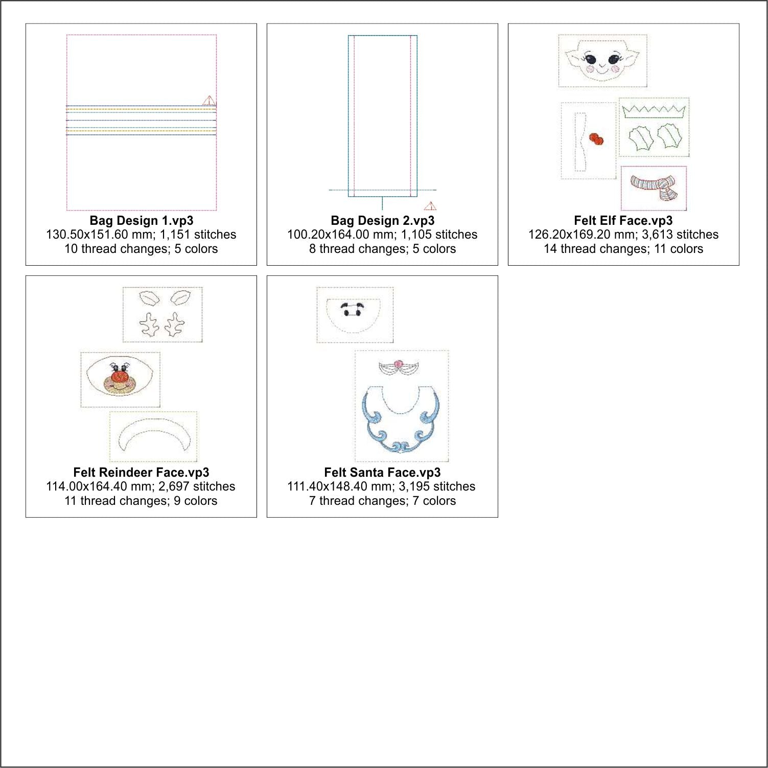 Make these fun and easy ITH Christmas Mini Pouches in the hoop. A little hand sewing is needed to finish the hat and 2 straight running stitch lines are needed to box the bag base. Everything else is done in the hoop from inserting the zipper to putting the pouch together. The faces are stitched out onto felt and are added to the pouches using hot glue. Kam Snaps are used for the side tab. This makes it super easy to add a swivel attachment later. An extra colour stop is added to the pouch files so your machine won't move to the center of your hoop at the end. This colour stop is NOT stitched.