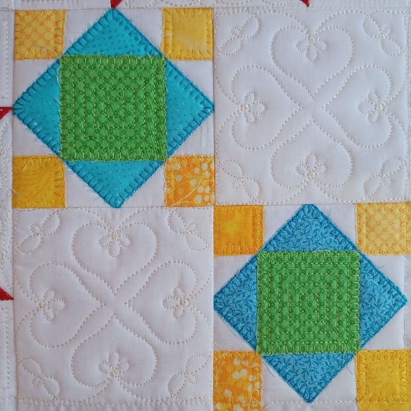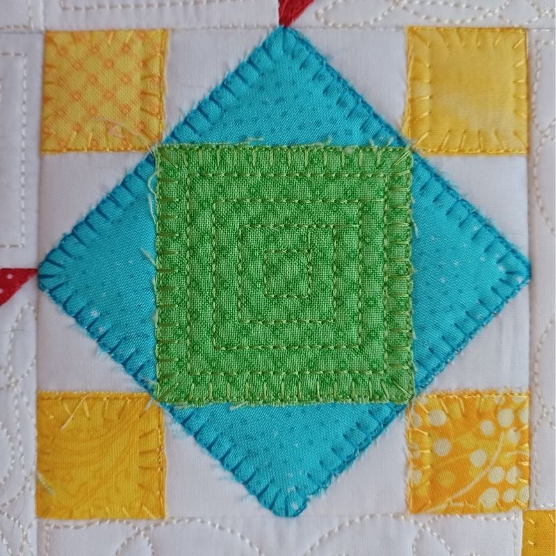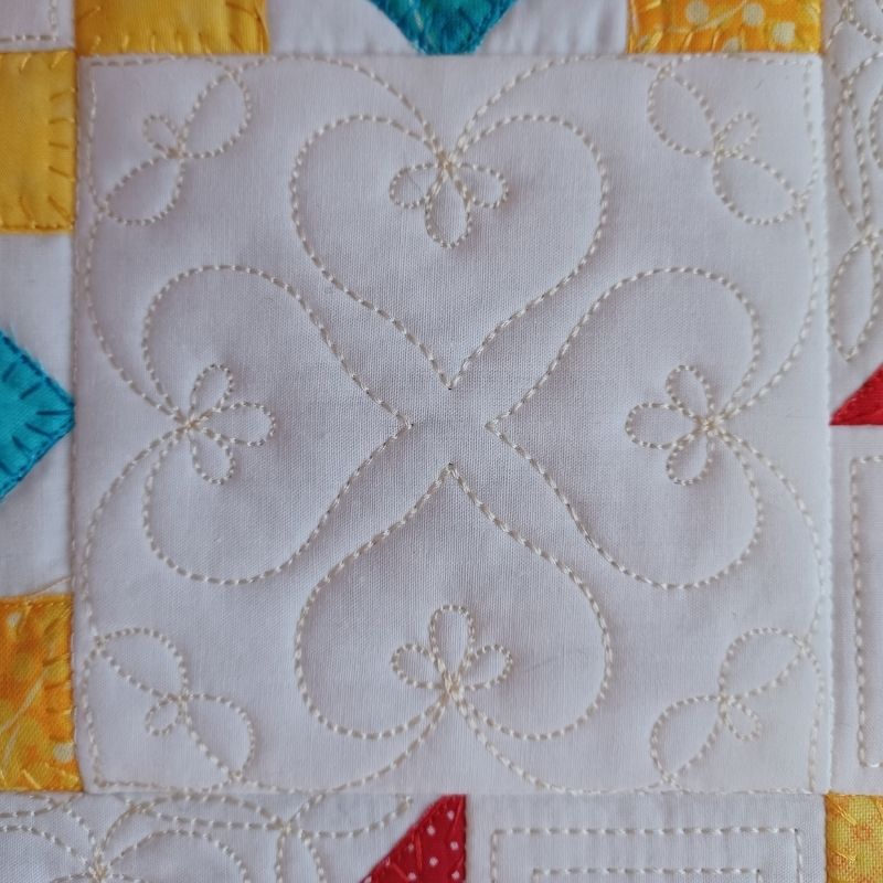 The panels are then joined together using a sewing machine. The backing and binding is also added using a sewing machine.