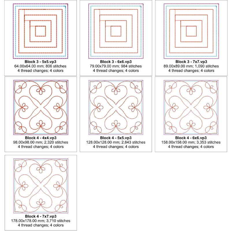 The blocks come in 4 sizes, 4x4, 5x5, 6x6, 7x7