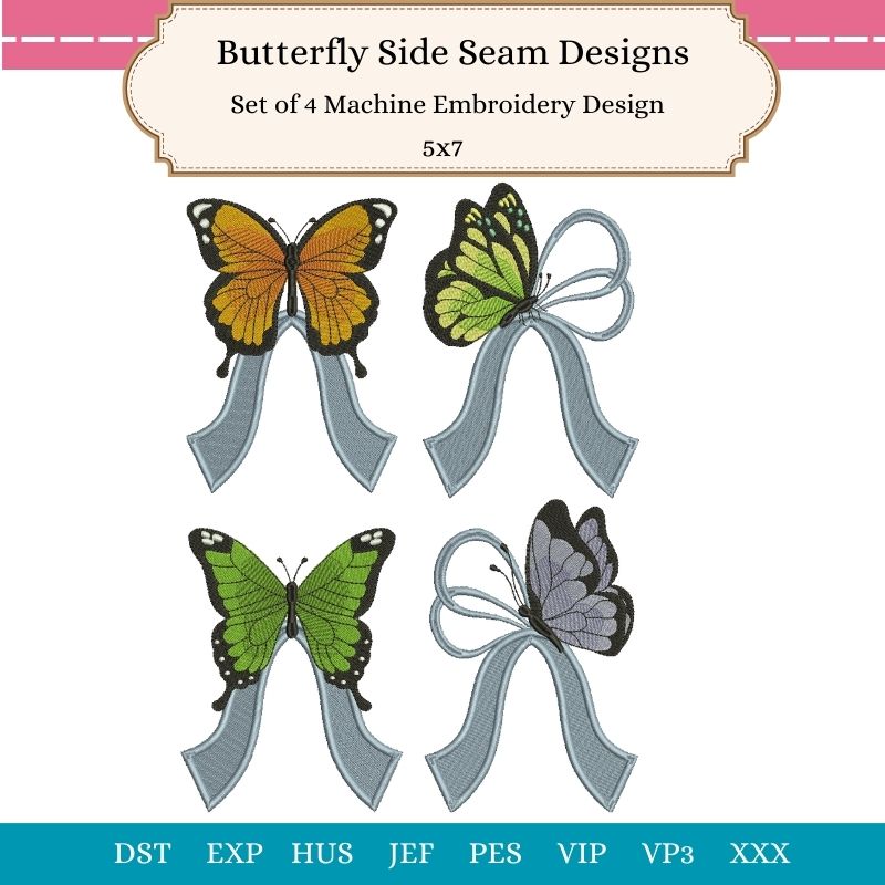 These shaded butterfly side seam designs are perfect to update a t-shirt, sweater or top. Just use our general guide to stitch out side seam designs, and embellish your next top with one of these lovely butterfly and ribbons designs.