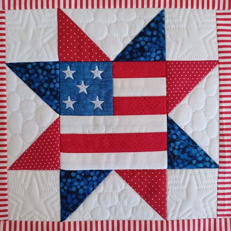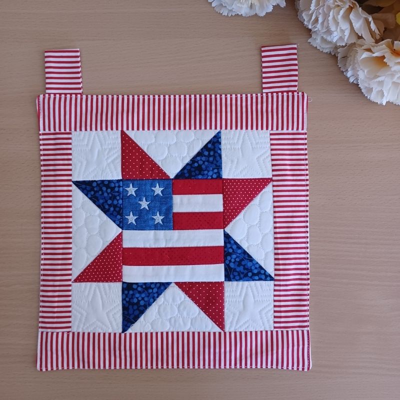 This easy to make quilted patriotic mini hanger would look great on a mini quilt hanger on an entrance hall table or put on display in your favourite spot. This design can also be used as a block for a quilt or cushion. You could even use it to make a table runner.