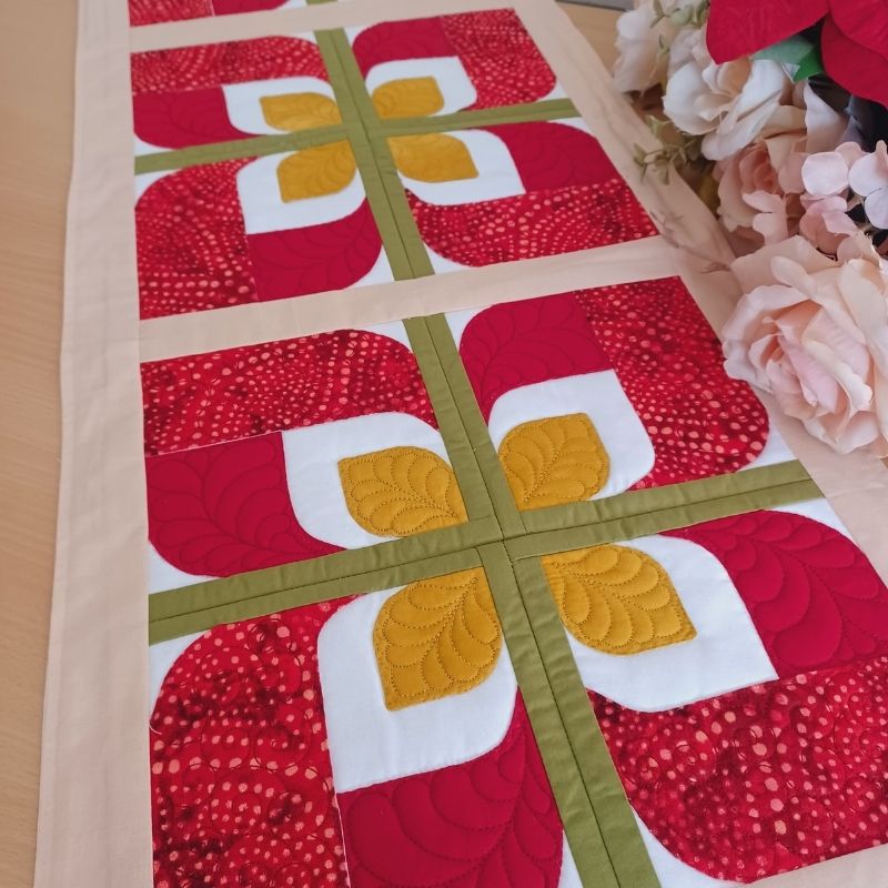 The blocks are joined together and the table runner is completed using a sewing machine.