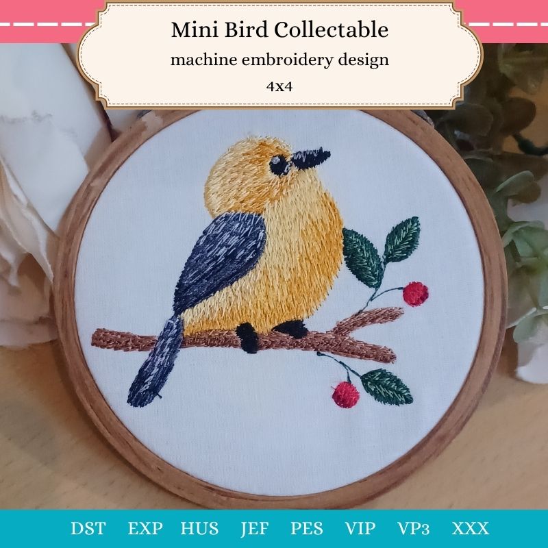 This adorable little yellow bird is must have for your embroidery collection. Measuring only 3.18" x 2.65", this mini bird collectable would look perfect in a small embroidery hoop to hang up, on a card, napkin, bib, in a picture frame, on a hat etc. This is a single design and fits the 4x4 hoop.