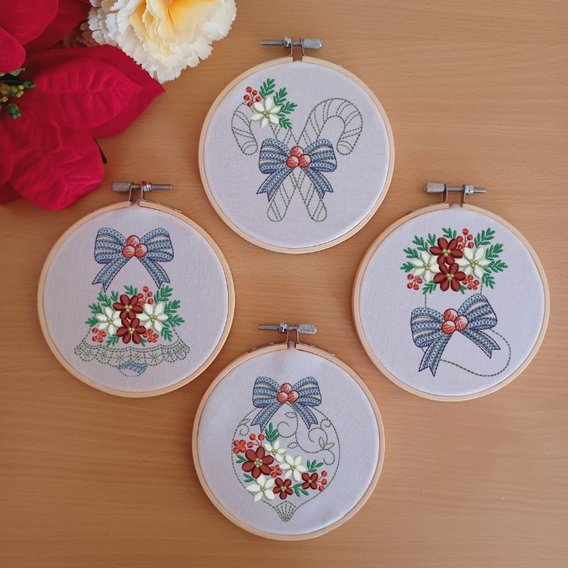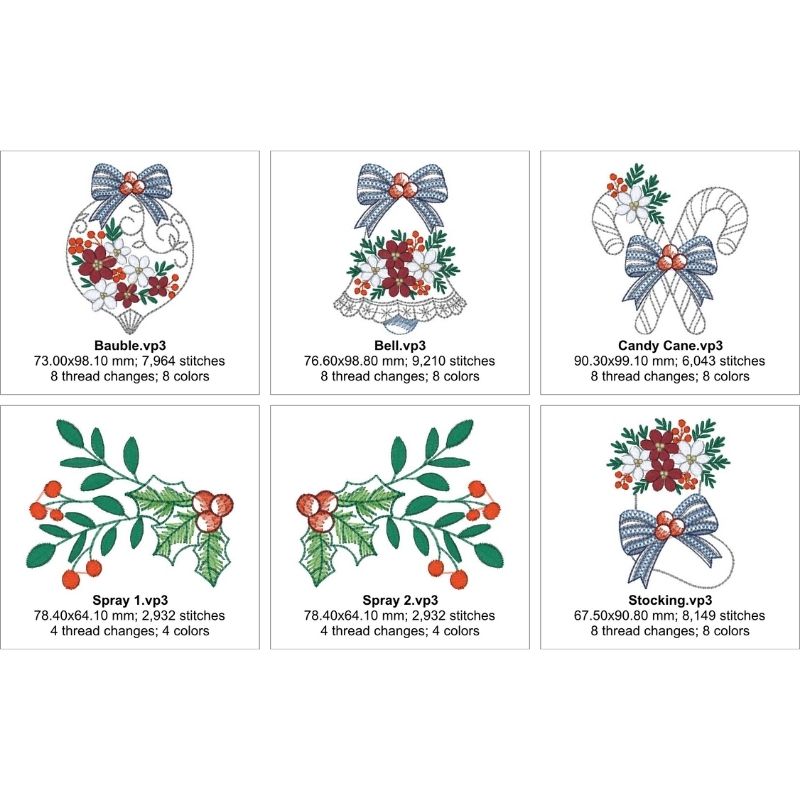 These heirloom Christmas designs are perfect for your next Christmas project. Stitch onto fabric and then add the stitchout to cardstock to make special cards this year. Use on napkins, table cloths, cushions and many other projects. Add the leaf sprays to either side of the Christmas design to create edgings. Have fun mixing and matching the pieces to create beautiful heirloom embroidery designs for your project. You can also use these designs to go into small embroidery hoops to hang on your tree as an ornament. Use metallic threads to add a bit of shimmer to your designs.