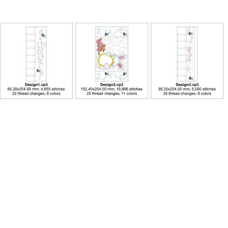 This super cute April Mini Quilt is made using applique and the sew and flip technique. Each panel is made entirely in the hoop. The panels are joined and the mini quilt is completed using a sewing machine.