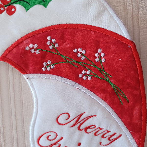 Each piece of this ITH Large Applique Candy Cane Design is done completely in the hoop including the backing. The red and white fabric is done in the applique technique with some machine embroidery. No additional sewing needed.