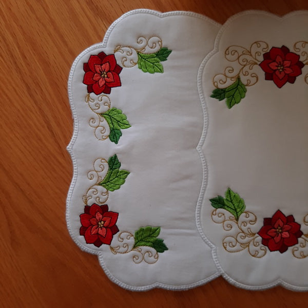 The ITH Festive Table Mat is made entirely in the hoop. It is made in 3 hoopings. There is no extra sewing.