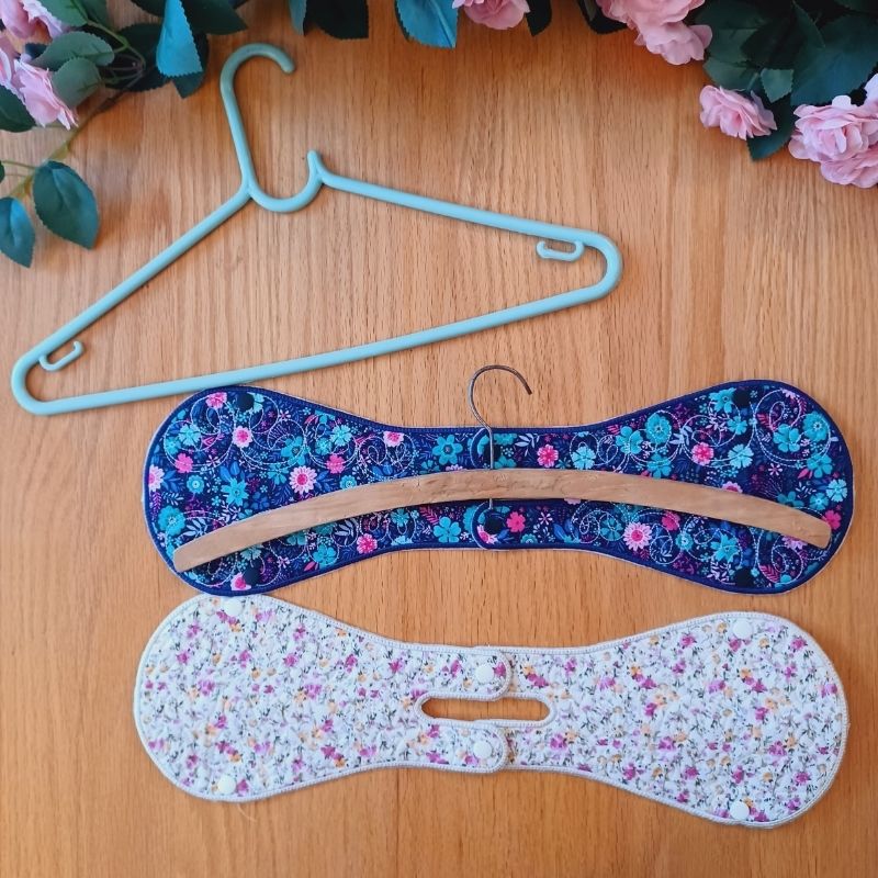 The Quilted Coat Hanger Saddles are super easy and quick to make. Each Coat Hanger Saddle is made in 2 pieces. Each piece is completed In The Hoop and then clipped together with Kam Snaps to make the hanger.