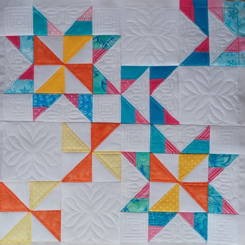 The panels are then joined together using a sewing machine. The backing and binding is also added using a sewing machine.