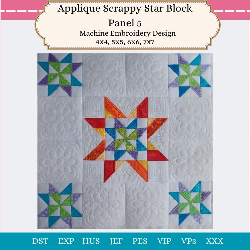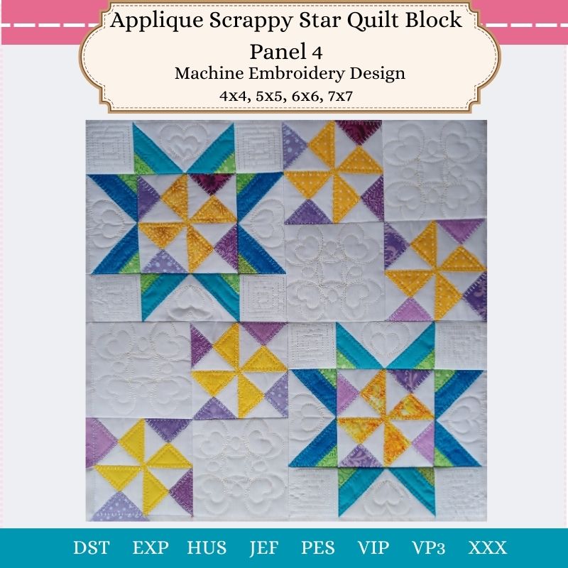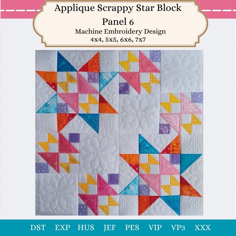 Get all 6 sets of these applique scrappy star quilt block panels for only $24.ย This combo is valued and $60.ย