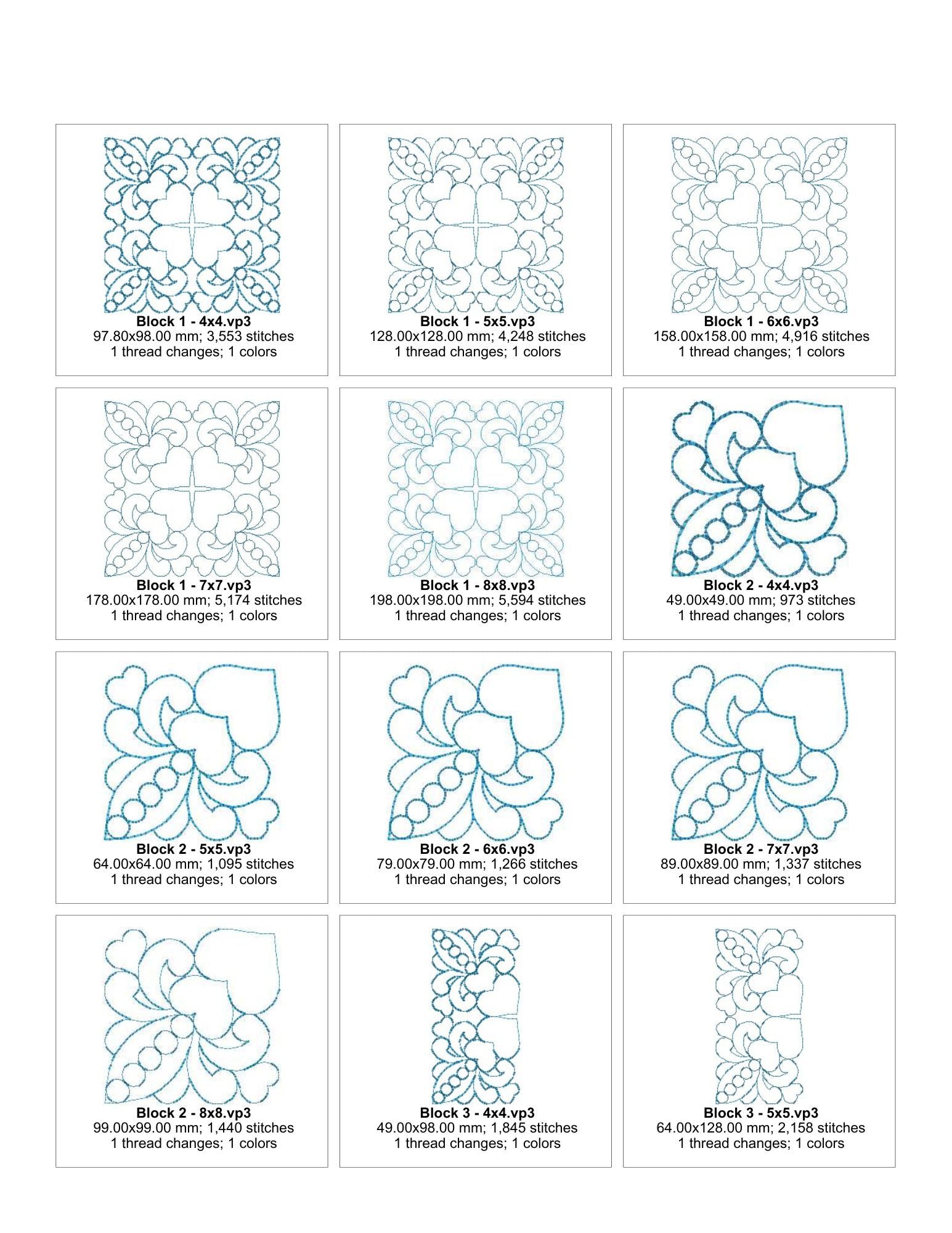 This set of Quilt block stencils has a mix of various sizes. There is a design for any quilt projects