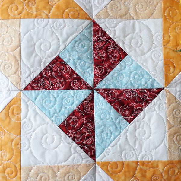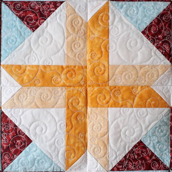 This Windmills and Stars quilt conjures up dreams of a country picnic. Flowers blooming, lush green grass, sheep in the meadows…I’m sure you can imagine a windmill in the background. The Windmills and Stars Flip ‘n Turn quilt block is very easy to make in the hoop with a minimal stitch count. It is assembles with quick stitching together under a sewing machine and can be made as big as you like or a mini quilt using the 5x5 block. The set includes 5x5, 6x6, 7x7 and 8x8 size blocks.