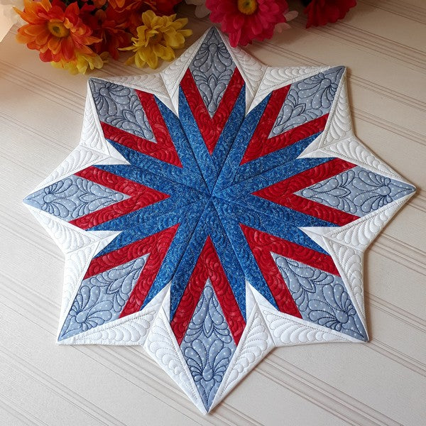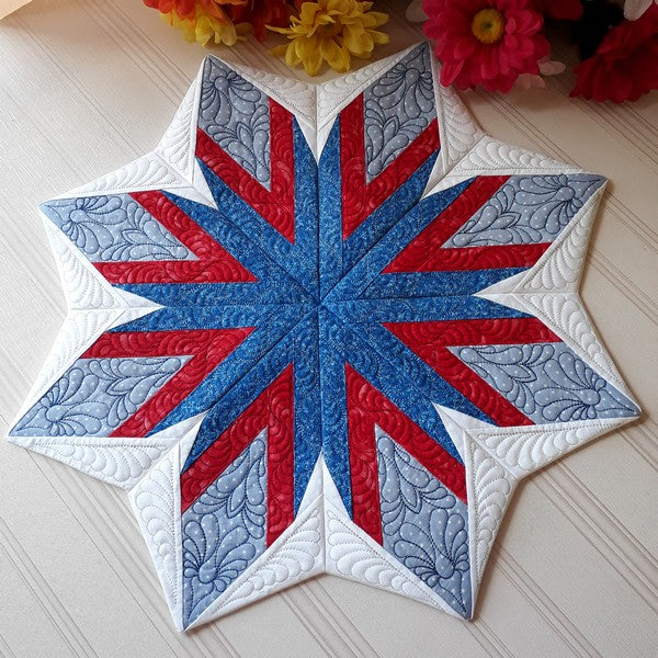 A cracker of a quilt to brighten up your tables, the 4th Firework Quilt is an easy to make table topper quilt that can be made over a weekend or a day if you’re quick.