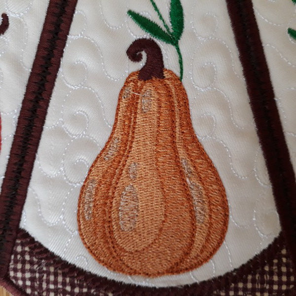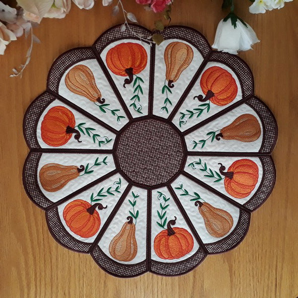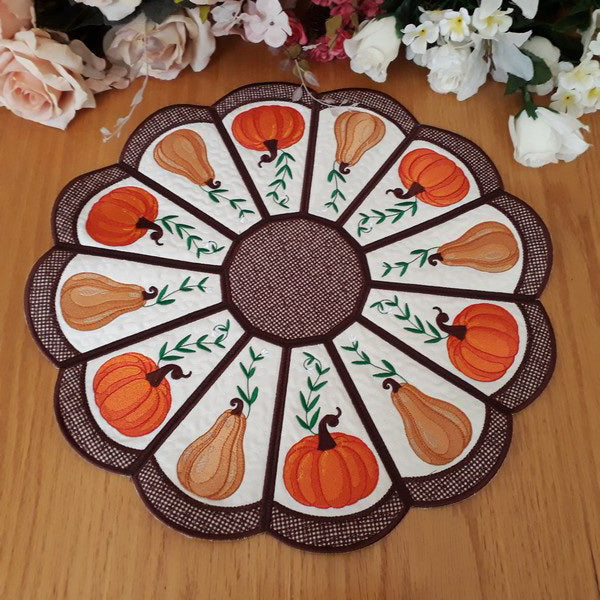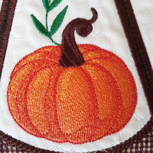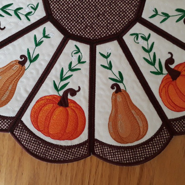 Pumpkin Spice and everything nice. Let’s set the table for fall with the Pumpkin Love Table Topper. Each piece is made complete and lined in the hoop and finished by sewing the panels together.