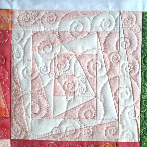A Bouquet of Roses for my love. A special take on the log cabin block makes this a table runner stand out. Each block is made in the hoop using the Flip-n-Turn method.
