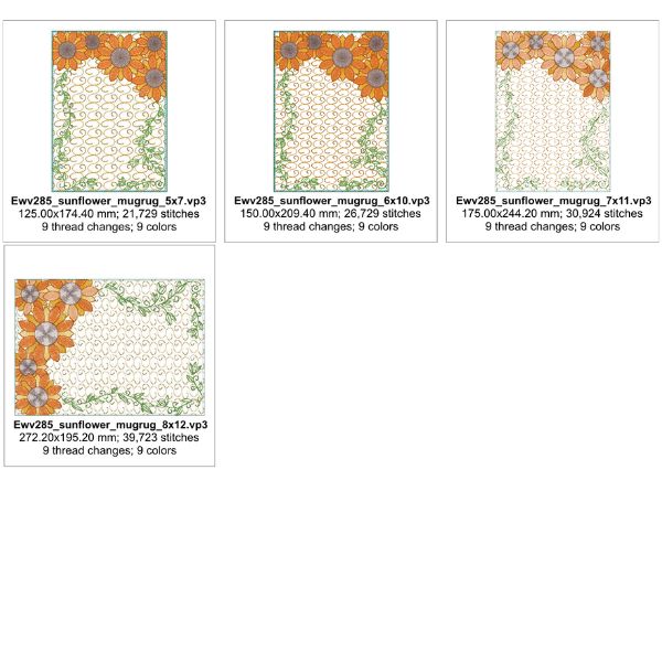 Sunflower Mug Rug done for the 5x7, 6x10, 7x11 and 8x12 hoops
