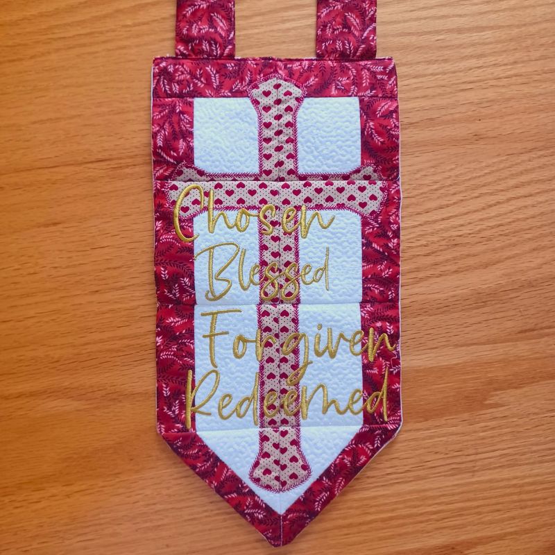 It is always a blessing to show ones faith, especially at Easter. The Blessed Garden Flag is made from 8 hoopings using applique and flip-n-turn method with satin stitch lettering, it is assembled on the sewing machine. It is in 3 sizes made to fit hoops that take 4"x4", 5"x5" and 6"x6" blocks.