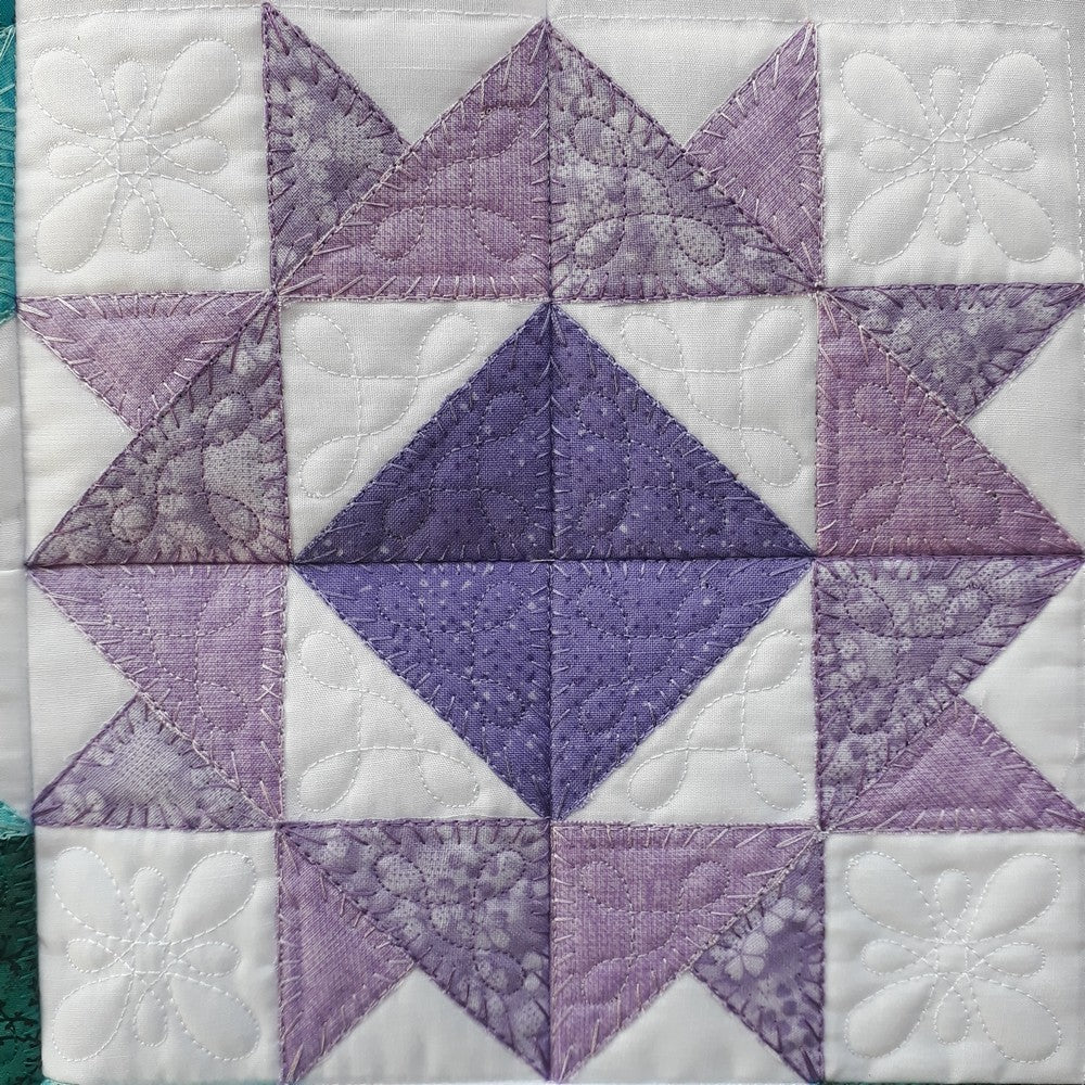 Each block is made and quilted in the hoop. Β The fabrics are added to each block using the applique method.Β