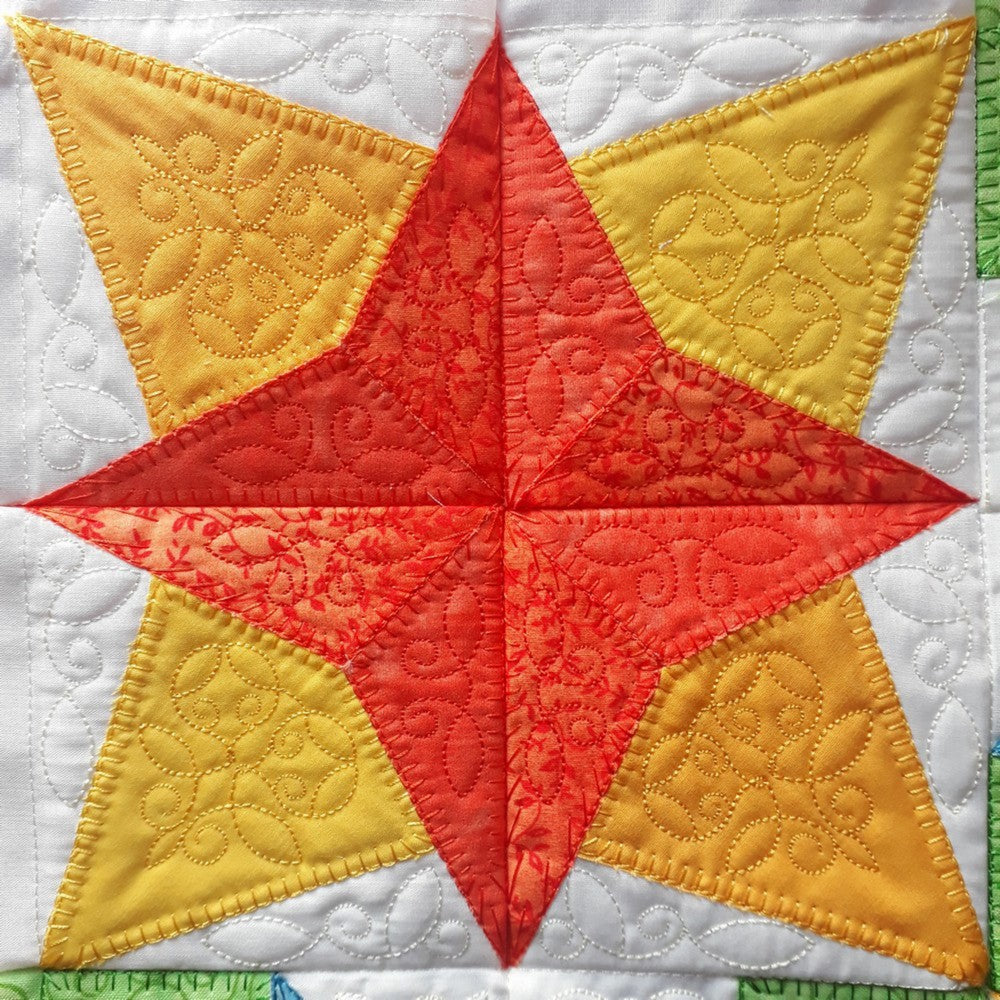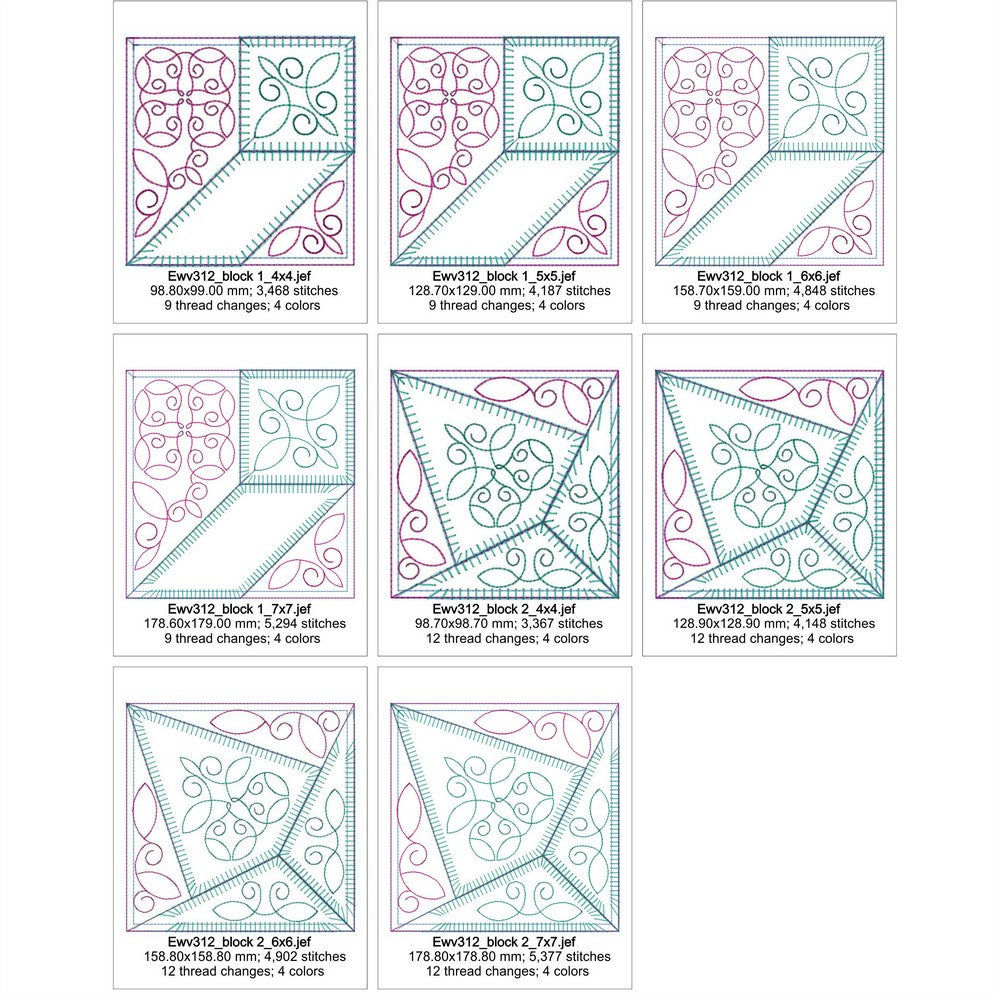 Each block is made and quilted in the hoop. Β The fabrics are added to each block using the applique method.Β