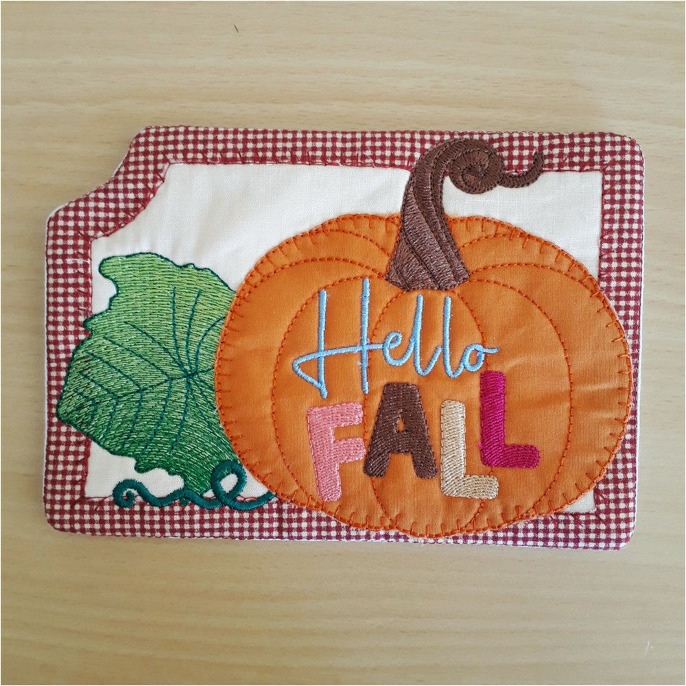 It’s that time of the year when the leaves change colour and fall. There is a chill in the air and it is time for a cup of hot coffee or chocolate. The Fall Mug Rugs add a bit of cozy spice to it all. Each mug rug is made entirely in the hoop using applique and decorative embroidery.