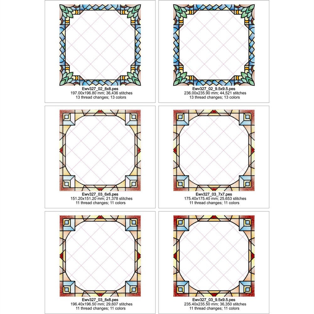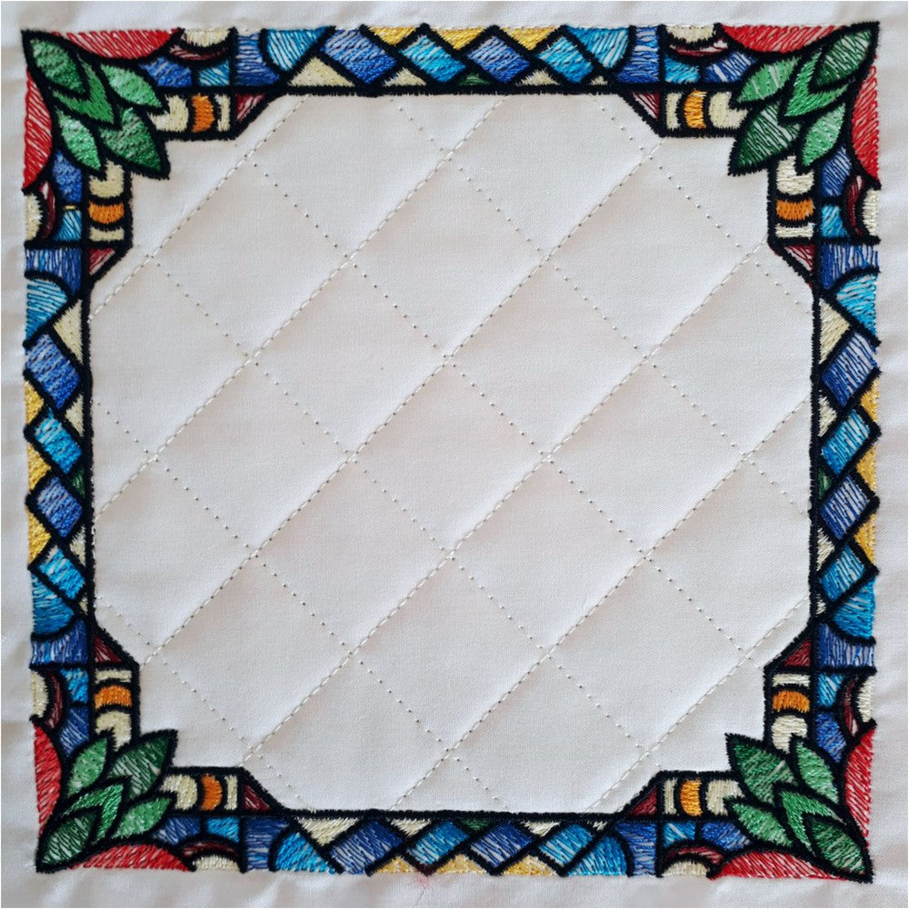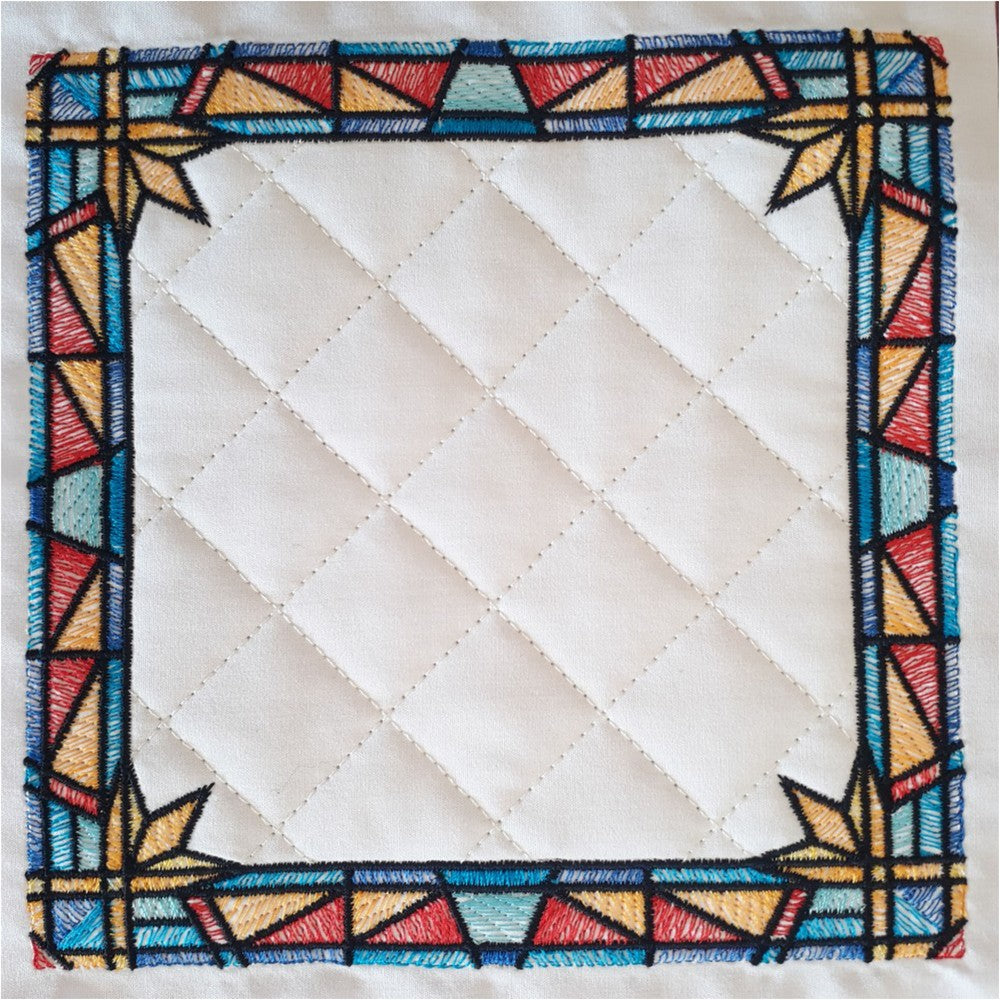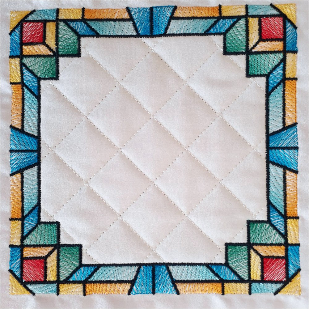 Made as a special request, these Stained Glass Quilt Blocks are perfect for personalizing for a church wall hanger to which you can add Bible verses. These blocks are great for Christmas or Easter celebrations. They are very straight forward to make and the bright colours give these blocks the translucent effect of stained glass. Block sizes are 6"x6", 7"x7", 8"x8" and 9.5"x9.5" (9.5"x9.5" blocks are only DST, EXP, PES & XXX)