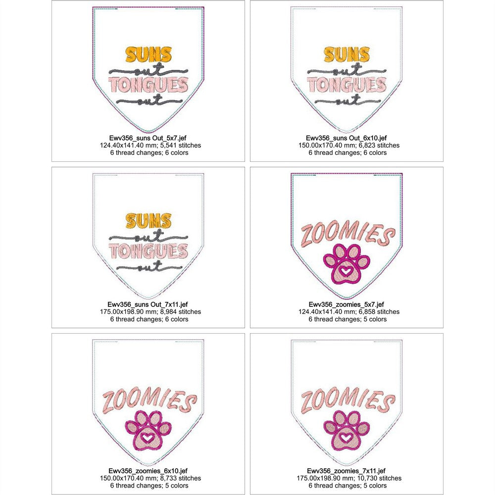 Time to WOOF it up for our fur babies. This set is the 3rd of the 4 sets of Doggo Bandanas. The Doggo Bandanas are made in the hoop, turned right side afterwards and then the top part is folded in half and stitched either by hand or on a sewing machine to make the sleeve for the collar to slide through.